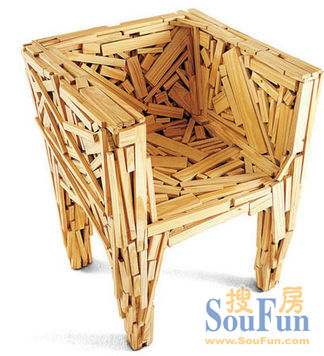 事实上是由多个长短不一的小木块拼接到一起的。将边角料做一次环保家具的改造,既节约成本,又透着创意设计的灵巧。