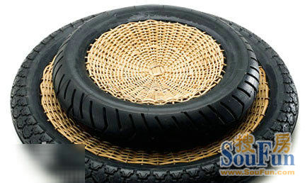 你能想象一大一小两个轮胎能为家居设计贡献什么创意吗?用藤条编织物做成椅垫,用轮胎围边,一个双层蛋挞座椅就呈现在你面前了,橡胶与藤制品在材质上的相互碰撞也颇具设计感。