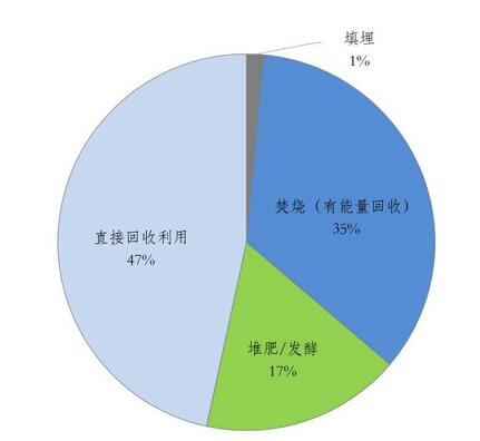 图:2014年德国城市生活垃圾不同方式处理量占比